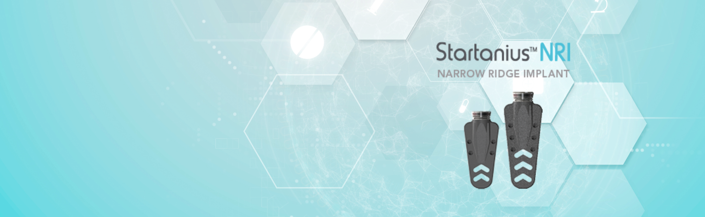 Piezo surgically placed Startanius™ NRI, the future of narrow ridge implants. Startanius™ NRI (Narrow Ridge Implant) is 1 mm wide at its narrowest point. Coupled with a minimally invasive piezo surgical placement and conical taper leading to a hexed screw-retained connection, the implant is designed and tested for long-term stabilization for fixed or removable crown and bridge applications.