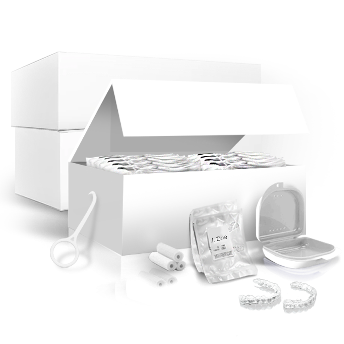 If you’d like to further decrease the labor impact to your practice, we can fabricate the aligners and deliver them in beautiful white packaging. Just add a label with your practice logo and you have your own custom aligner brand!